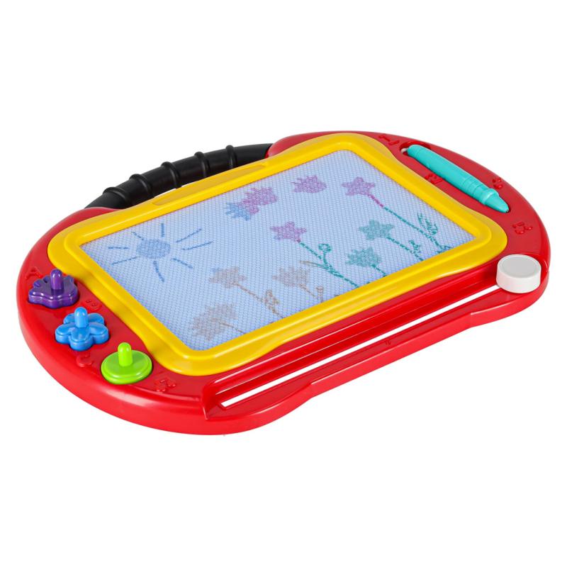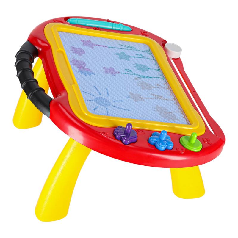 Podczas rodzinnych popołudni czy dłuższych podróży, tablica magnetyczna edukacyjna z funkcją znikopisu oraz stempelkami pozwala na rozwijanie wyobraźni i zdolności manualnych dziecka. Wielofunkcyjny stolik do rysowania staje się centrum kreatywności, które można łatwo przenosić dzięki wygodnemu uchwytowi.