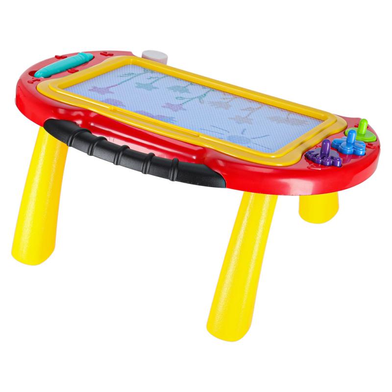 Produkt łączy zalety tradycyjnej tablicy magnetycznej ze znikopisem, umożliwiając rysowanie i szybkie usuwanie obrazów. Zestaw wyposażono w 3 różnokolorowe stempelki – zielony, niebieski i fioletowy – które zachęcają do tworzenia różnorodnych wzorów i wzmacniają motorykę małą dziecka. Czteroodpinane nóżki zapewniają stabilność stolika zarówno na podłodze, jak i na biurku, co daje elastyczność w aranżacji przestrzeni do nauki i zabawy.