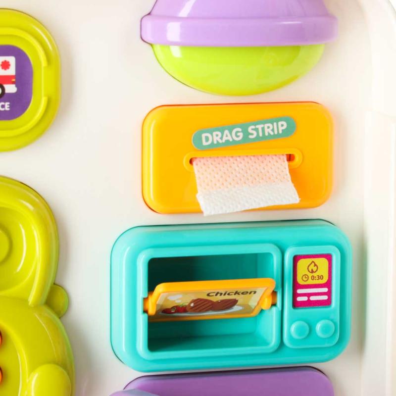Tablica manipulacyjna interaktywna samochód światło dźwięk to doskonałe narzędzie, które pozwala na rozwijanie zmysłów i motoryki dziecka w formie zabawy w domu. Dzięki niej maluch z łatwością odkrywa świat poprzez interakcję z ruchomymi elementami oraz efektami świetlnymi i dźwiękowymi.