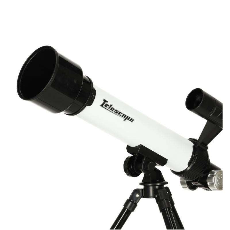 Teleskop astronomiczny luneta obserwacyjna dla dzieci ze statywem 30x 60x umożliwia obserwację odległych obiektów z powiększeniem 30x i 60x dzięki dwóm wymiennym okularom. Sprzęt wykonano z plastiku, ma średnicę soczewki 50 cm i ogniskową 500 mm, wysokość 47 cm i długość 49–64 cm. W zestawie znajduje się statyw, szukacz, uchwyt na telefon oraz ściereczka. Wbudowany kompas ułatwia orientację, a solidna konstrukcja zapewnia stabilność podczas obserwacji. Produkt przeznaczony dla dzieci od 8 lat, wspiera rozwój umiejętności manualnych oraz zainteresowanie astronomią. Pakowany w kartonowe opakowanie.