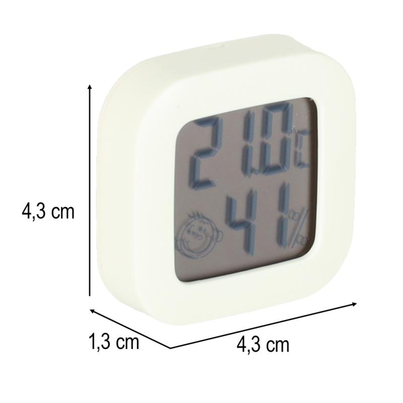 Termometr pokojowy elektroniczny z higrometrem mierzy temperaturę w zakresie -50–70°C oraz wilgotność 10%–90% z dokładnością 1°C i 5%. Urządzenie posiada czytelny wyświetlacz LCD pokazujący precyzyjne wartości, a jego kompaktowe wymiary 4,3 × 4,3 × 1,3 cm ułatwiają umieszczenie w każdym pomieszczeniu. Zasilany jest baterią CR2032, co zapewnia wygodę użytkowania. Higrometr pomaga kontrolować wilgotność powietrza, co jest istotne dla zdrowia oraz ochrony mebli i materiałów w domu. Regularne monitorowanie warunków sprzyja utrzymaniu komfortowego i bezpiecznego środowiska życia.