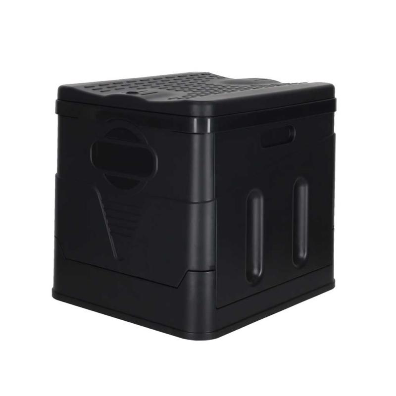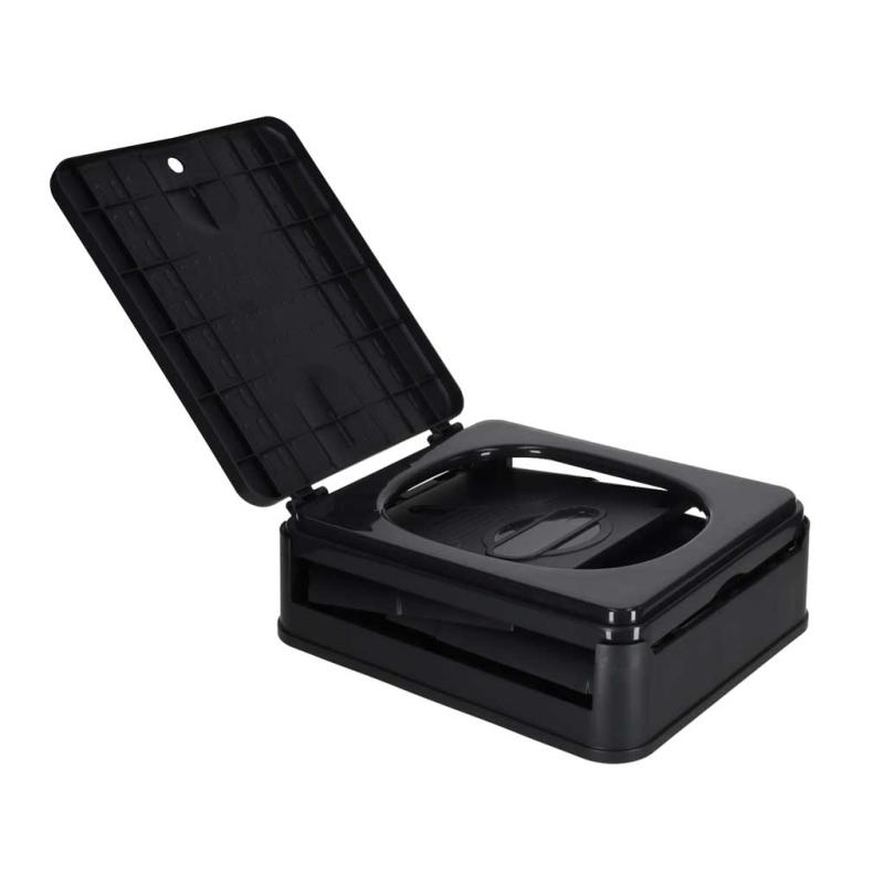FoldCamp 20L to składana toaleta turystyczna zaprojektowana tak, by szybko przygotować mobilne WC i równie sprawnie je złożyć. Lekka obudowa z tworzywa PP i boczne uchwyty ułatwiają przenoszenie, a pokrywa z otworem na palec pozwala na wygodne podnoszenie i zamykanie. Złożona zajmuje kompaktowe wymiary 29 × 33,5 × 31 cm, dzięki czemu zmieści się w bagażniku samochodu czy schowku kampera.