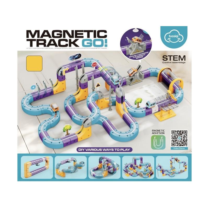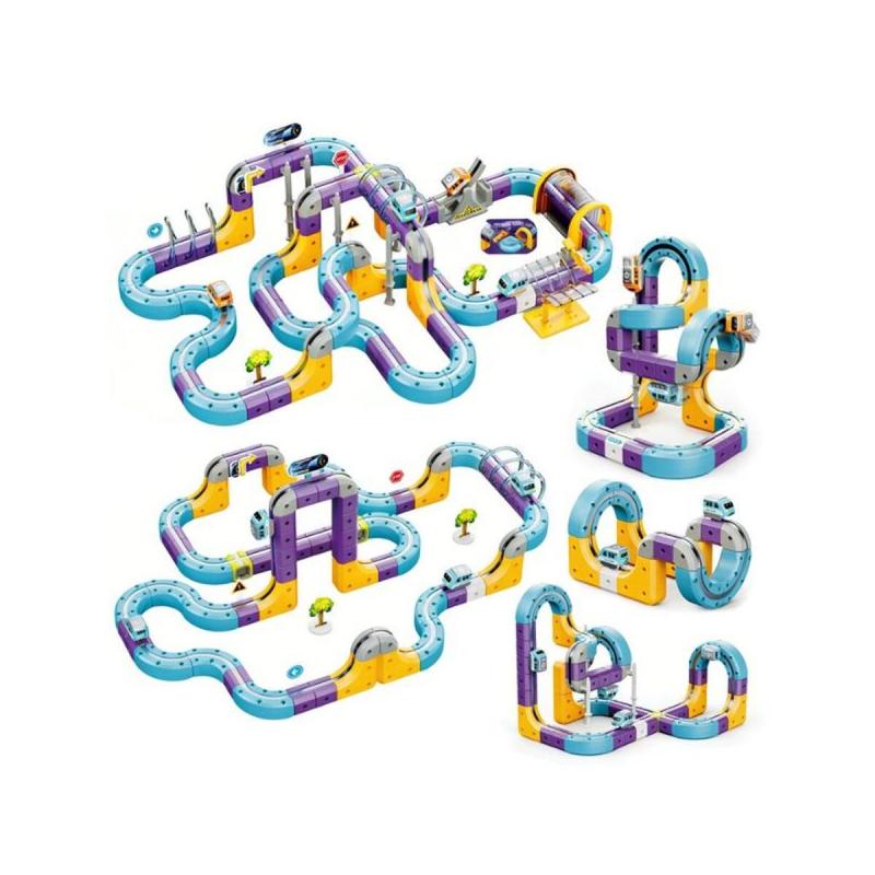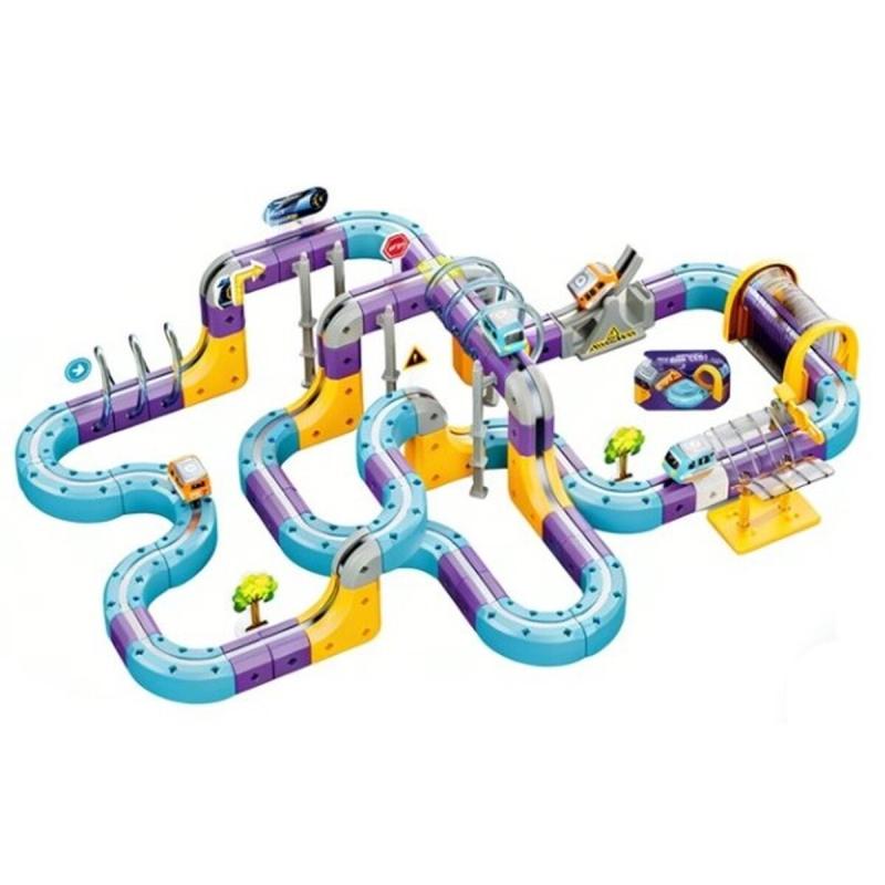 Tor Magnetyczny Zjazd samochodowy Kolejka Zjeżdżalnia Pociąg Klocki Konstrukcyjne 128 el.