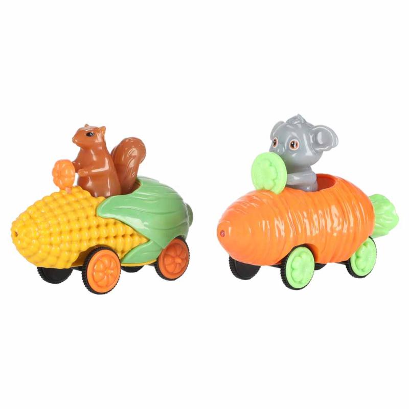 W zestawie znajdują się też figurki i dodatki zachęcające do odgrywania scenek: 2 samochodziki z figurkami (wiewiórka i koala), 18 motylków oraz 18 małych zwierzątek. Intensywność zabawy podnosi fakt, że samochodziki świecą — wymagają do działania każdorazowo 1 bateria AAA (pojazdów są 2, zasilanie: 2x bateria AAA brak w zestawie). Całość zapakowano w poręczny kolorowy karton z rączką, co ułatwia przechowywanie i przenoszenie.