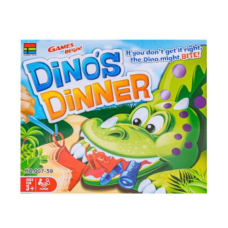 Gra zręcznościowa GŁODNY DINOZAUR - zabawka z chwytakami i 20 przedmiotami do zbierania, przeznaczona dla 2–4 graczy, dla dzieci powyżej 3 roku życia. Gra wymaga refleksu i zręczności: na zmianę wyciągacie skarby z paszczy dinozaura, unikając jej „ugryzienia”; można podnieść trudność, zbierając tylko przedmioty w kolorze swojego chwytaka. Zestaw zawiera elementy do złożenia dinozaura, 2 chwytaki (czerwony i niebieski), 20 przedmiotów oraz oryginalne opakowanie. Dinozaur ma wymiary ok. 25 × 18,8 × 16 cm, opakowanie 27 × 22 × 10 cm. Idealna gra rodzinna rozwijająca koncentrację i koordynację ruchową.