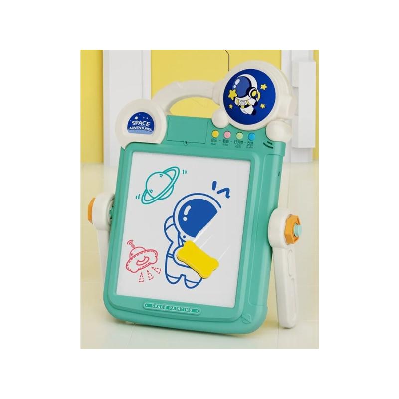 Tablica została wyposażona w efekty dźwiękowe — melodyjki ukryte pod czterema przyciskami umilają chwilę rysowania i zabawy, co dodatkowo angażuje dziecko sensorycznie. Produkt wykonano z atestowanego tworzywa pozbawionego ostrych krawędzi, co minimalizuje ryzyko skaleczeń, a spełnienie norm potwierdza europejski certyfikat CE.