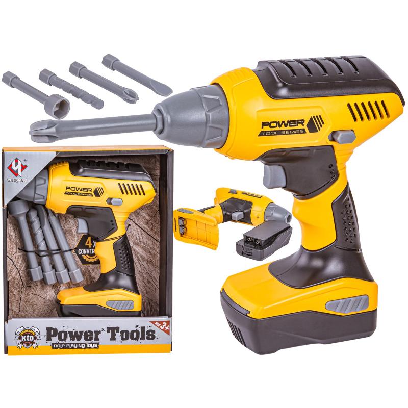 Zestaw naśladuje prawdziwe narzędzie — wiertarko-wkrętarka ma obrotową głowicę, możliwość obrotów lewo/prawo oraz wysuwany dolny „akumulator”, co pozwala dziecku poczuć pracę z elektronarzędziem w kontrolowany sposób. Elementy zostały zaprojektowane tak, aby były łatwe do chwytu i obsługi dla małych rączek; wymiary samej wkrętarki wynoszą 17,5 × 15,5 × 5 cm (bez bita), co sprawia, że urządzenie jest poręczne i dobrze leży w dłoni.