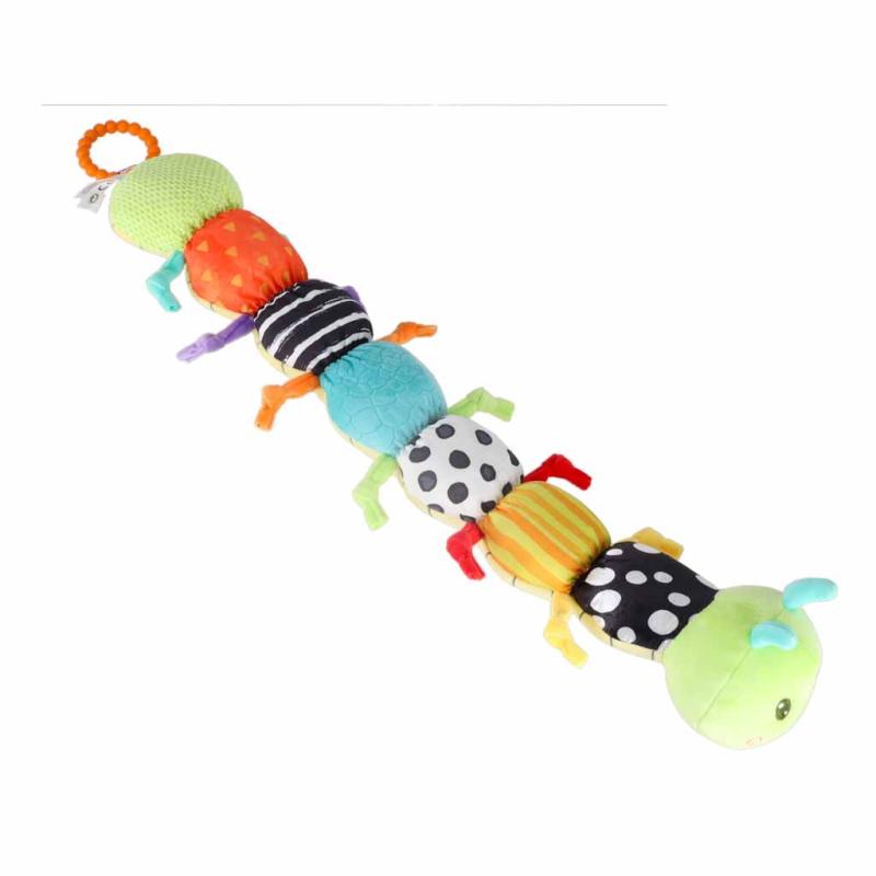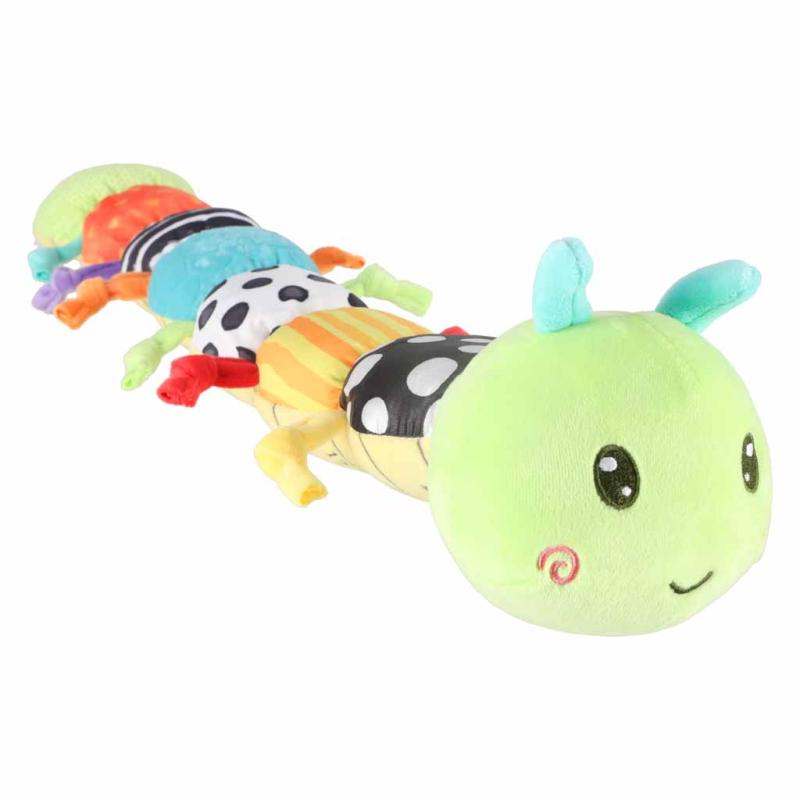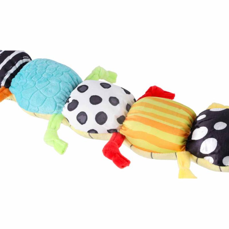 Pluszowa gąsienica pełni funkcję zabawki edukacyjnej dla najmłodszych, łącząc elementy dźwiękowe i dotykowe. Różnorodne zamontowane dodatki pozwalają na angażowanie wzroku, słuchu i dotyku podczas krótkich sesji zabawy.