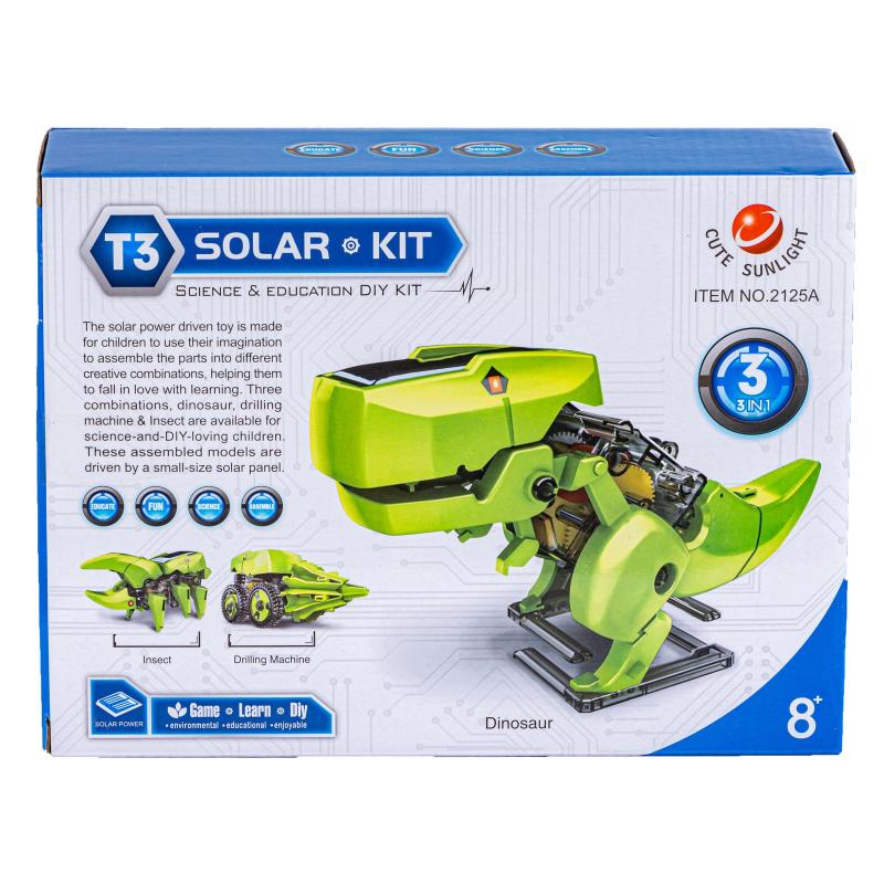 Robot solarny 3w1 (Dinozaur) – zasilanie słoneczne to edukacyjny zestaw do samodzielnego składania, który w praktyczny sposób pokazuje, jak energia słoneczna napędza mechanizmy; zabawka daje możliwość zabawy na zewnątrz i uczy ekologicznych podstaw działania silników bez użycia baterii.