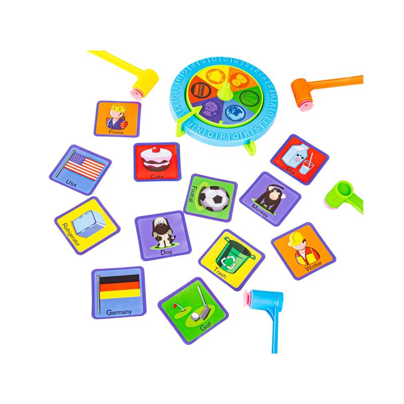 Gra polega na na przemian kręconym spinnerze, który losuje zadania do wykonania — większa wskazówka pokazuje przedmiot, wzór lub kolor do zbierania, a mniejsza wskazówka wskazuje jedną z literek alfabetu. Po zatrzymaniu spinu gracze ruszają do łapania kart przy pomocy specjalnych młotków z przyssawkami; złapana karta musi pasować do wybranej wcześniej kategorii, koloru lub litery. Zestaw zawiera spinner z obrotową tarczą, 4 kolorowe młotki z przyssawkami, 40 kart oraz oryginalne opakowanie, dzięki czemu całość jest gotowa do gry od razu po rozpakowaniu.
