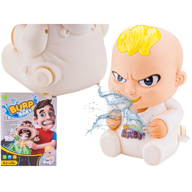 Gra rodzinna Bekający Bobas – Burp The Baby to lekka, interaktywna zabawka imprezowa, która wprowadza dużo śmiechu i napięcia podczas wspólnej zabawy; idealna, gdy chcecie sprawdzić refleks i opiekuńczość dzieci oraz dorosłych, a przy tym dobrze się pośmiać. Produkt zapewnia emocje: bobas płacze, śmieje się, beka i w losowym momencie może oblać trzymającego go gracza wodą.
