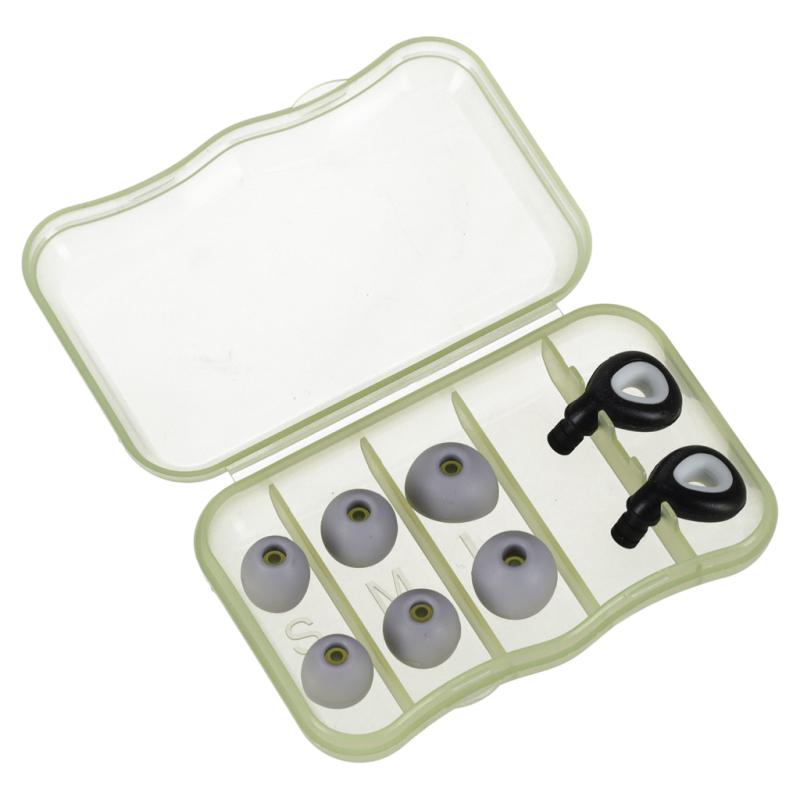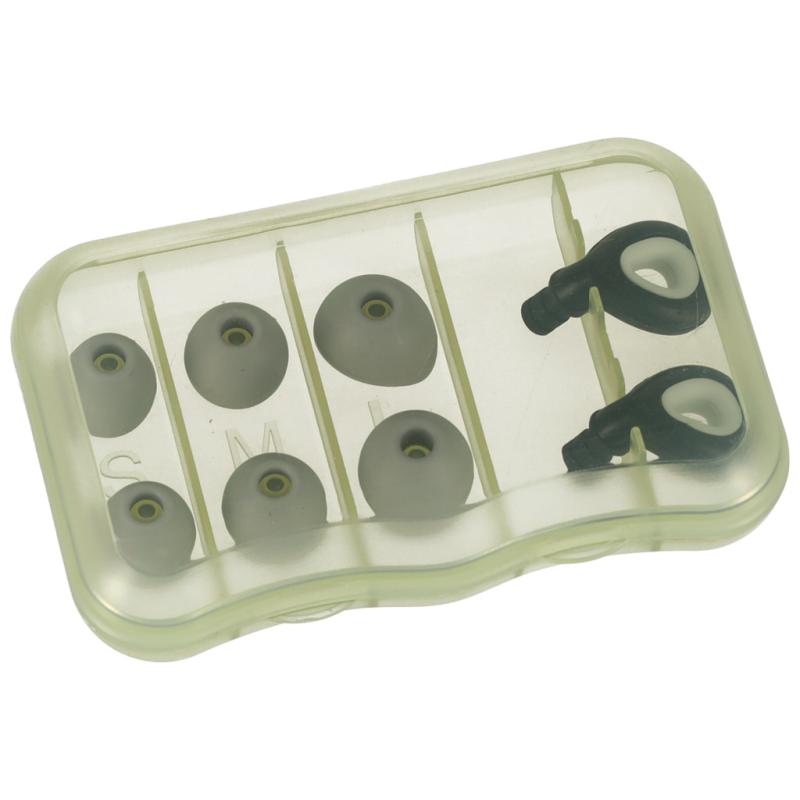 - Sześć wymiennych końcówek silikonowych w trzech rozmiarach, które można szybko dostosować do indywidualnego kształtu ucha.