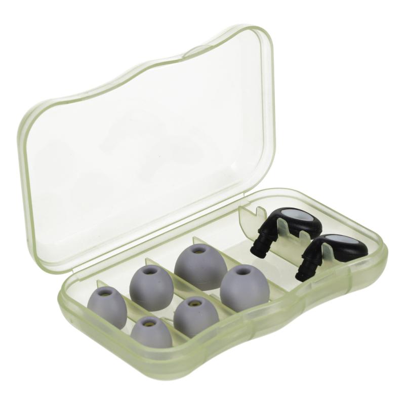 - Trzy dopasowane rozmiary końcówek (S, M, L) umożliwiają idealne przyleganie do kanału słuchowego, zapewniając wygodę nawet podczas długotrwałego stosowania.