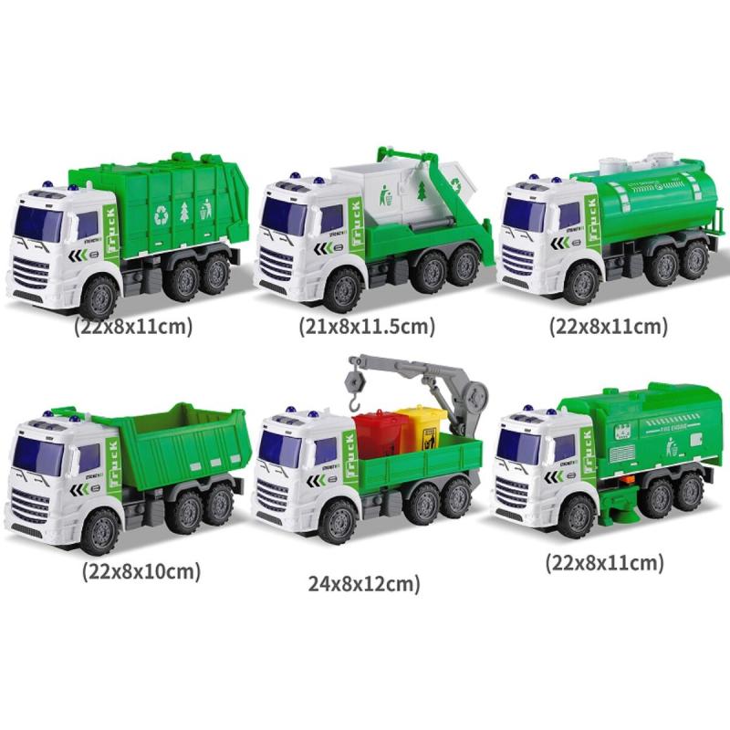Zestaw 6 Pojazdów Ciężarowych Ciężarówka Tir Ciągnik Wywrotka Śmieciarka Beczkowóz