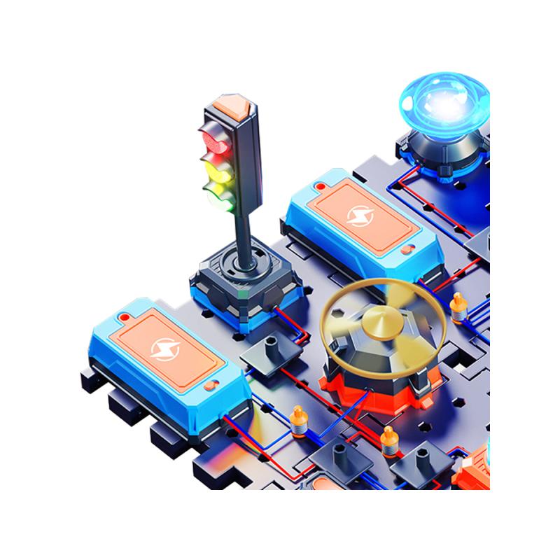 Ten edukacyjny zestaw pozwala na poznanie zasad działania obwodów elektronicznych poprzez praktyczne eksperymenty. Zestaw do eksperymentów łączy naukę z przyjemnością, dzięki czemu dziecko samodzielnie konstruuje układy z użyciem elementów takich jak sygnalizacja świetlna czy wiatrak. To świetny sposób na rozwijanie umiejętności logicznego myślenia oraz manualnych zdolności.