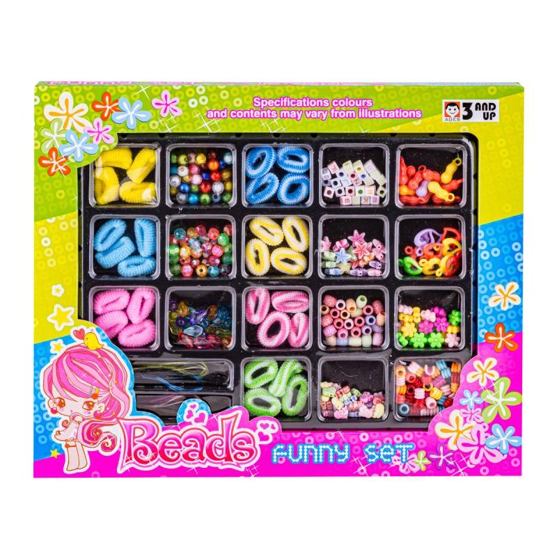 Zestaw do tworzenia biżuterii i ozdób — Model 202-A5 — Kolorowe koraliki to gotowy komplet, który zamieni czas zabawy w twórcze warsztaty, pozwalając dziecku samodzielnie projektować bransoletki, naszyjniki i ozdoby do włosów. Dzięki dodatkowym gumkom i żyłkom w czterech kolorach każde pomysły szybko nabierają realnych kształtów.