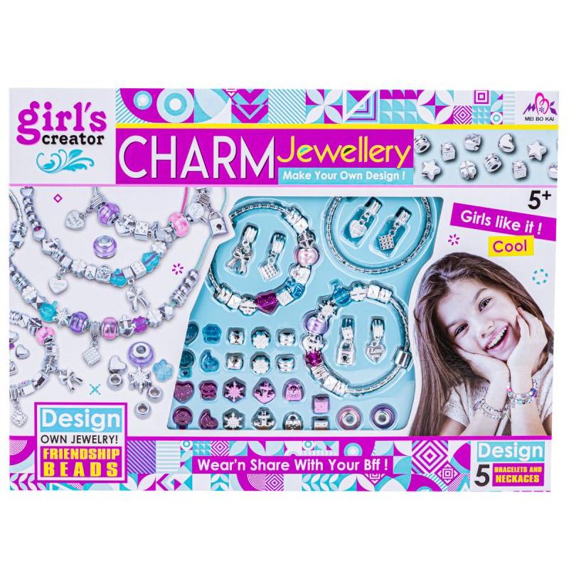 Zestaw Tworzenia Biżuterii MBK-333 do samodzielnego projektowania to gotowy pakiet do tworzenia kolorowych bransoletek i zawieszek, który zabierze dziecko w świat kreatywnej zabawy i pozwoli ćwiczyć zdolności manualne. Dzięki gotowym bransoletkom i bogatemu wyborowi charmsów łatwo osiągnąć efektowny rezultat już podczas pierwszej sesji twórczej.