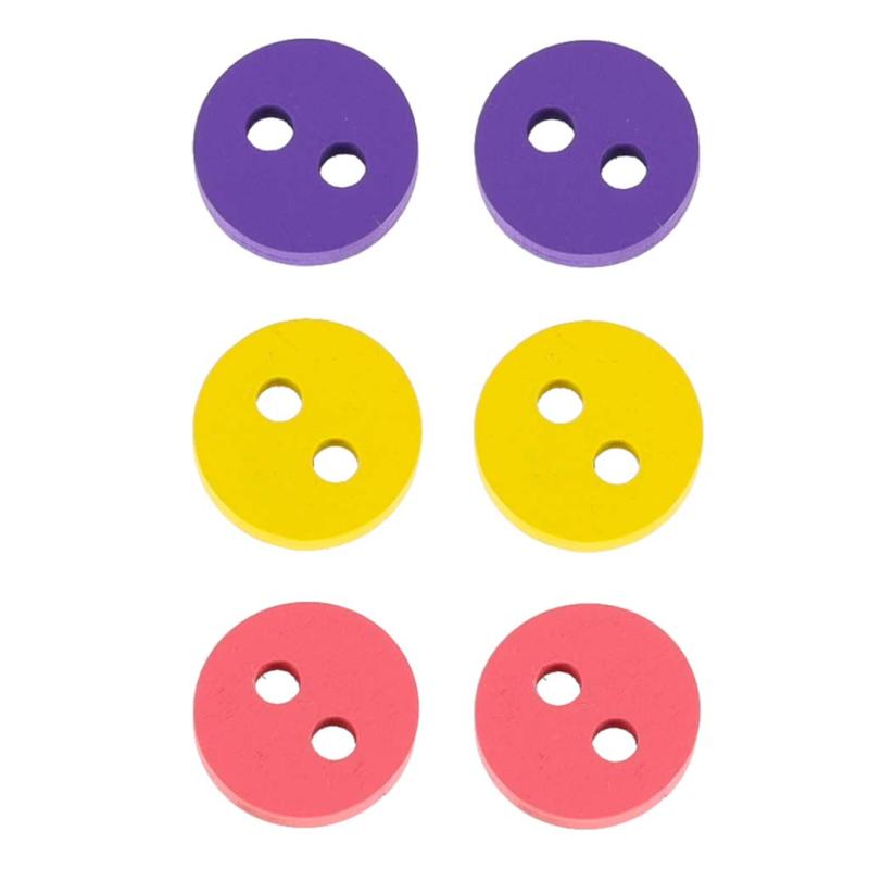 - 6 kolorowych guzików o średnicy 2,5 cm