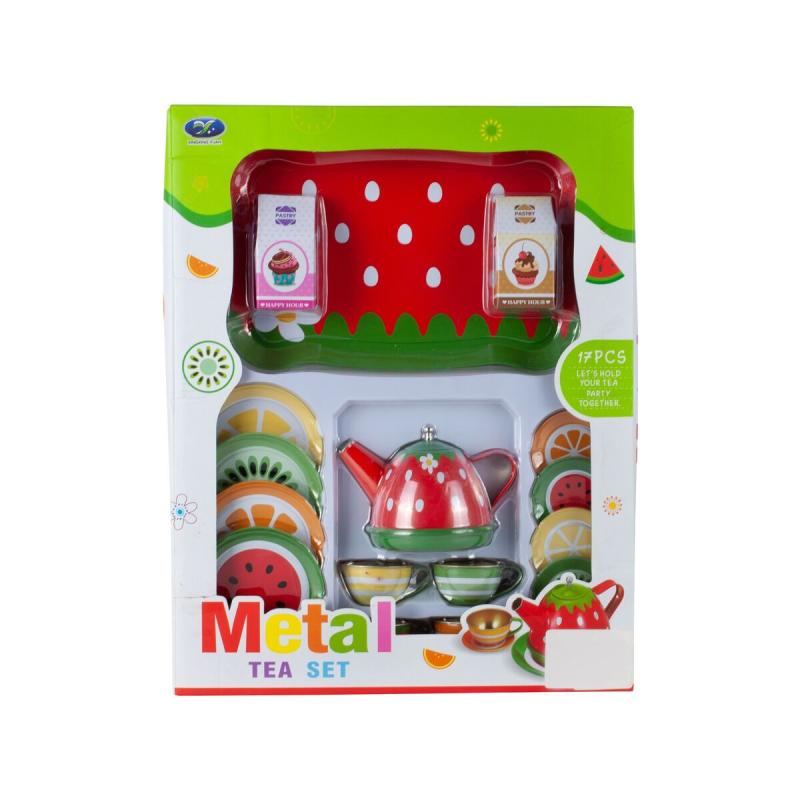 Zestaw Kawowy, do Parzenia Herbaty Kawy Czajnik Filiżanki + Akcesoria 17 el., metalowe elementy, dla dzieci powyżej 3 roku życia. Zabawka wiernie odwzorowuje akcesoria do parzenia napojów i cechuje się dbałością o detale; zawiera czajniczek, 4 filiżanki ze spodkami, 4 talerzyki oraz tackę, a w komplecie są też 2 deserki (kartoniki) i oryginalne opakowanie. Opakowanie ma wymiary 39,2 × 31 × 9 cm, tacka 24,1 × 15,7 cm, średnica talerzyka 9 cm. Metalowe wykonanie zwiększa trwałość, a żywa kolorystyka i kompletny zestaw 17 elementów sprzyjają długotrwałej zabawie, rozwijaniu wyobraźni i zdolności manualnych dziecka.