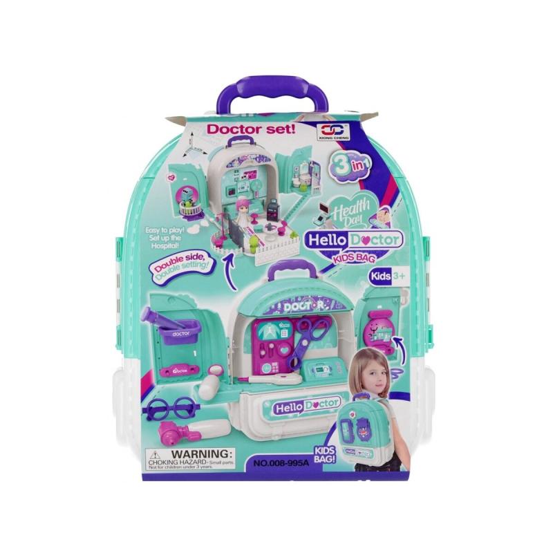 Zestaw Lekarski w Plecaku 3w1 Mały Doktor Walizka Plecak Domek Dla Lalek