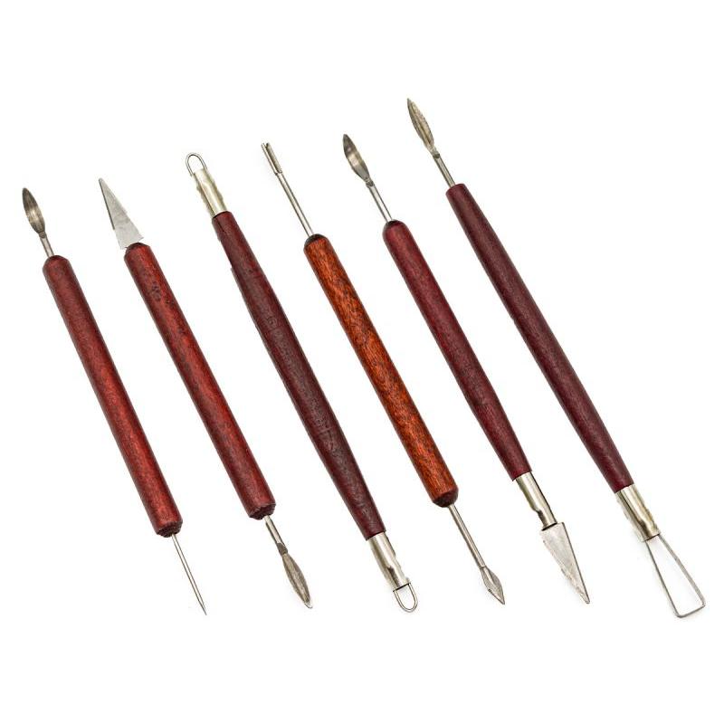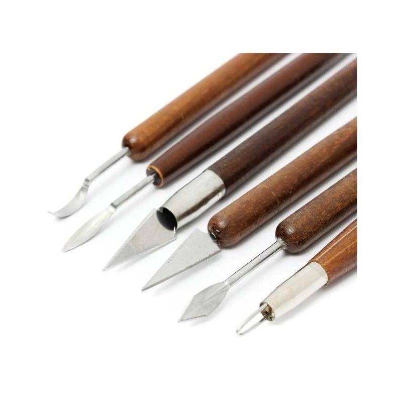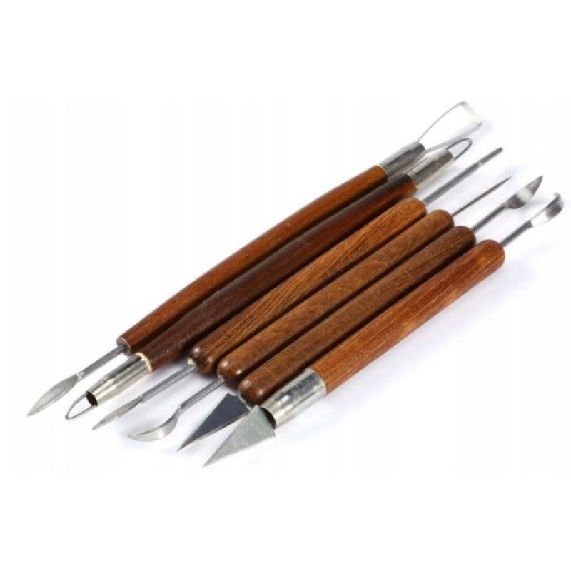 Zestaw narzędzi do rękodzieła 6 elementów — 6 różnych narzędzi z drewnianymi uchwytami, przeznaczony do pracy z mokrą i suchą masą. Zestaw umożliwia precyzyjne modelowanie gliny, gipsu, modeliny i plasteliny dzięki zróżnicowanym, podwójnym końcówkom; wygodne uchwyty poprawiają kontrolę pracy. W skład wchodzi 6 narzędzi z końcówkami takimi jak szpachelka, dłuto, szpikulec i podbierak, co daje szerokie możliwości formowania i wykańczania detali. Idealny do rzeźbienia detali i korekt podczas tworzenia ceramiki oraz drobnych prac rękodzielniczych.