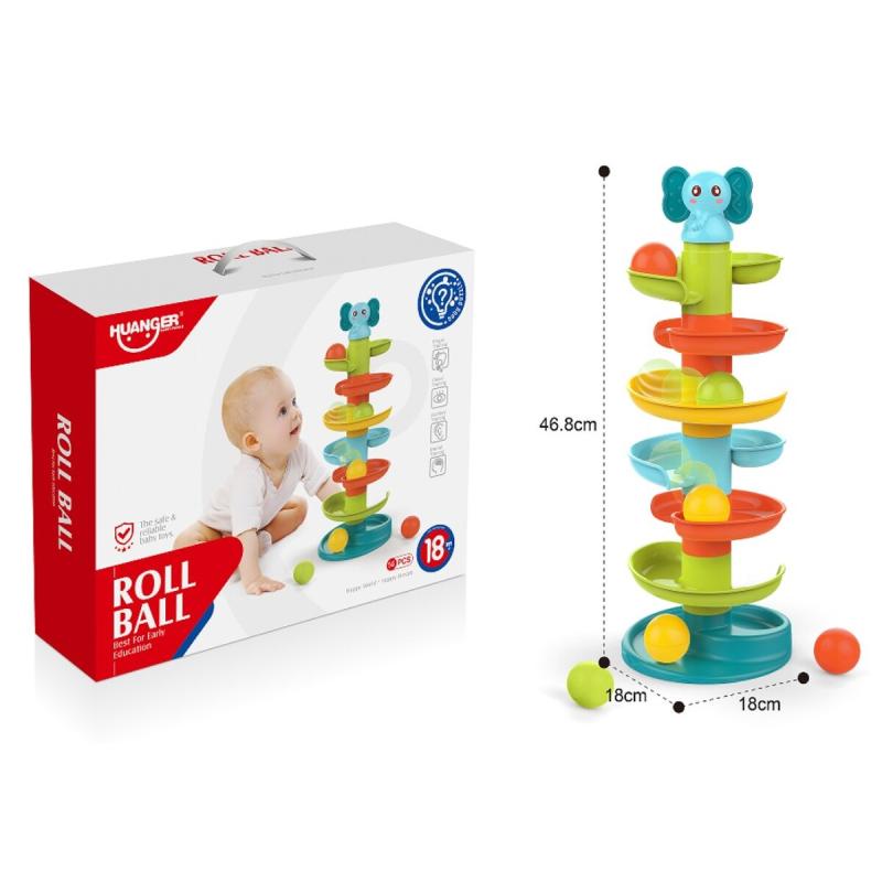Konstrukcja składa się z segmentów zjeżdżalni, które łatwo łączy się w stabilną wieżę o wysokości ok. 47 cm, a całość zapakowana jest w oryginalne opakowanie — gotowa do przechowywania lub wręczenia jako prezent. Elementy są lekkie i proste w obsłudze, dzięki czemu nawet dzieci powyżej 18 miesiąca życia szybko opanują zasady zabawy.