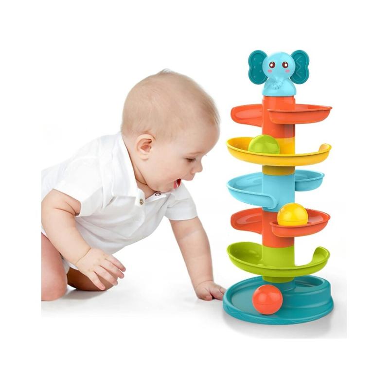 Zjeżdżalnia dla piłek Kulodrom — 6 piłeczek to kolorowa wieża z krętym torem, która wprowadza malucha w radosny świat przyczynowo-skutkowych zabaw, jednocześnie wspierając rozwój motoryczny i percepcyjny. Dzięki żywym barwom i dźwiękowym piłeczkom zajmuje uwagę dziecka, a konstrukcja pozwala na wielokrotne ćwiczenie chwytu i koordynacji.