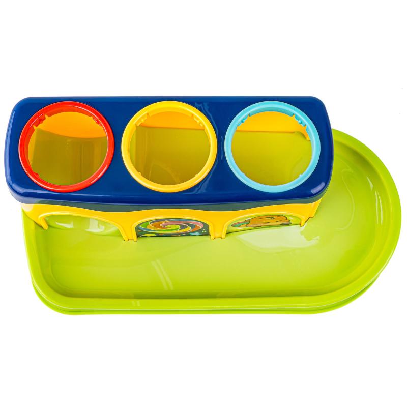 Zabawa jest bardzo prosta - polega na trafieniu w piłeczkę tak aby wbić ją w otwór. Piłeczka po zbiciu zjedzie zjeżdżalnią na sam dół. Jest to świetny pomysł na ćwiczenie koordynacji wzrokowo-ruchowej.