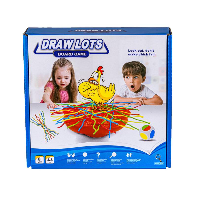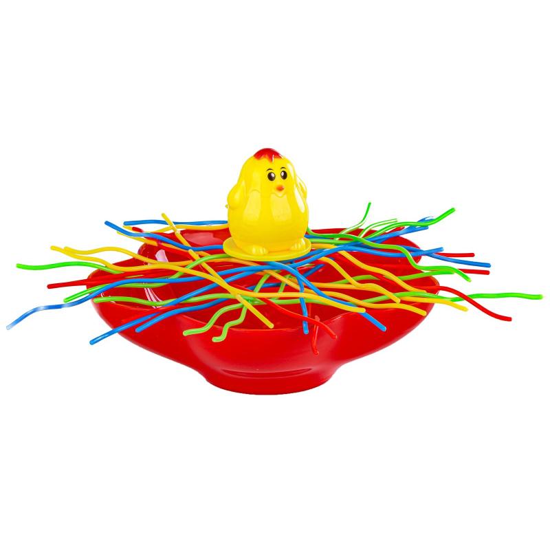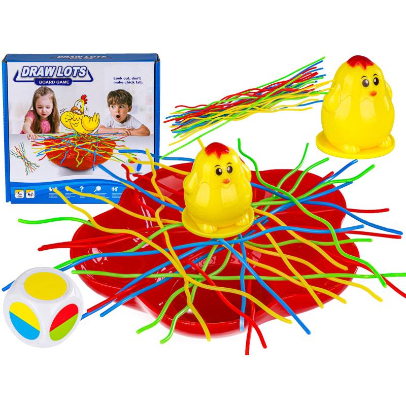 Bierki Spadający Kurczak — gra zręcznościowa z kurką, 24 nitek spaghetti i patyczkami ok. 20 cm, zapakowana w pudełko 21 × 21 × 5,5 cm, zapewniająca emocje przy każdym ruchu. Gra polega na delikatnym wyciąganiu patyczków tak, by kurka nie spadła do miski; proste zasady, szybkie rozgrywki i rosnące napięcie przy każdym posunięciu. W zestawie znajduje się kurka, miska, kostka oraz oryginalne opakowanie, co ułatwia przechowywanie i podróżowanie z grą. Idealna na spotkania rodzinne i imprezy — uczy precyzji, cierpliwości i zapewnia zabawę dla kilku graczy.